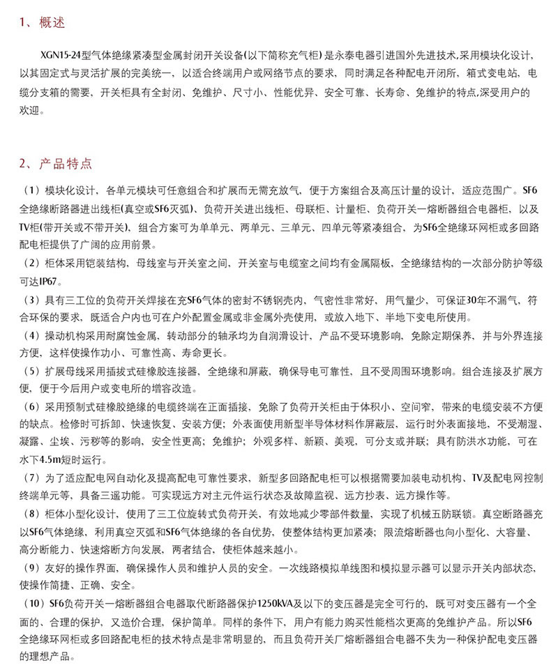 XGN15-24FR型氣體絕緣緊湊型金屬封閉充氣柜